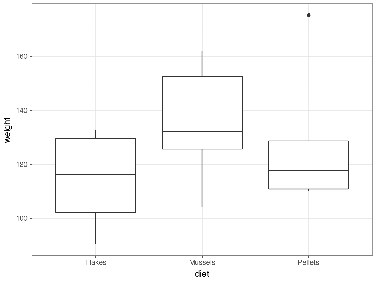 lm(formula = weight ~ diet, data = lobsters)