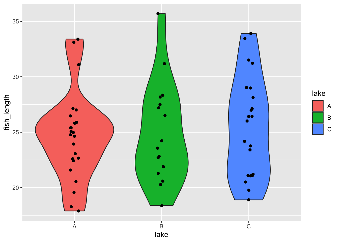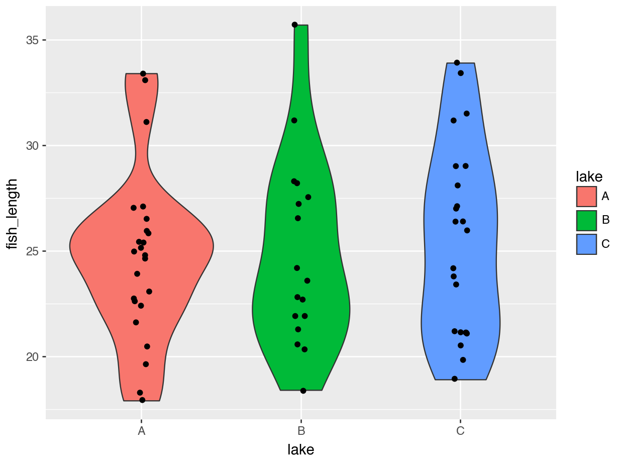 A lot of the points are overlapping, which makes it a bit hard to see how the data are distributed. We can do something about that (more on that in the next session), but we can also add some summary statistics in the form of a boxplot. We can simply add a layer to the plot that displays the boxes.