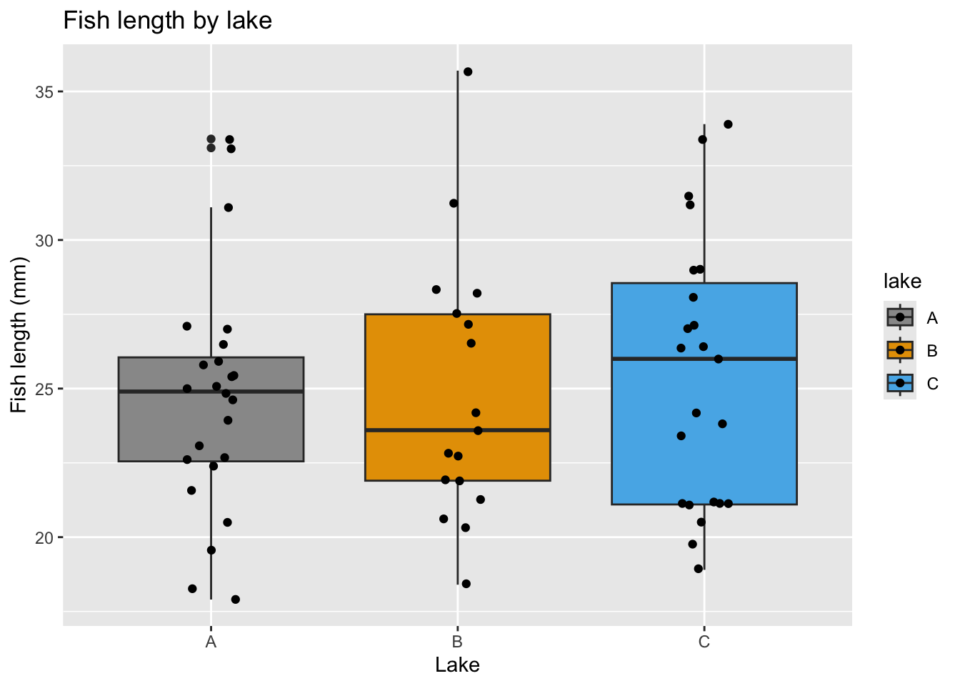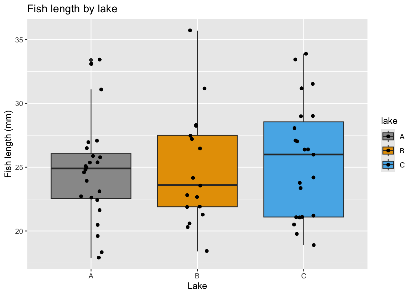 The fill = argument is used to fill surface areas. It doesn’t work on individual points, but instead on geometries that have an area, such as a boxplot, bar chart or violin plot.