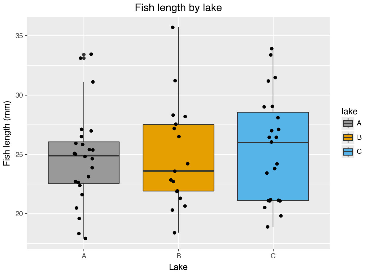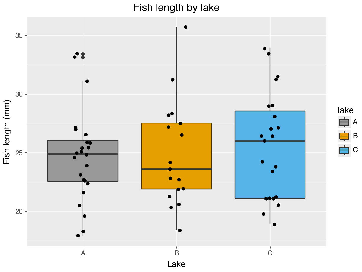 p.show()A lot of the points are overlapping, which makes it a bit hard to see how the data are distributed. We can do something about that (more on that in the next session), but we can also add some summary statistics in the form of a boxplot. We can simply add a layer to the plot that displays the boxes.