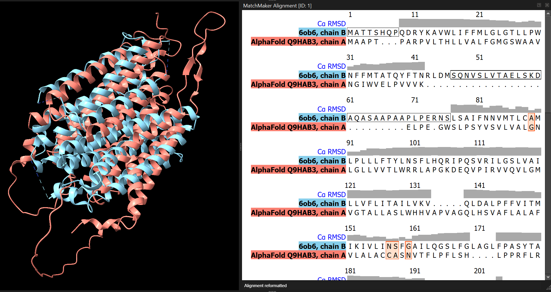 Once we have identified a homologous structure, we can perform a structural alignment in ChimeraX to compare the folds in more detail.