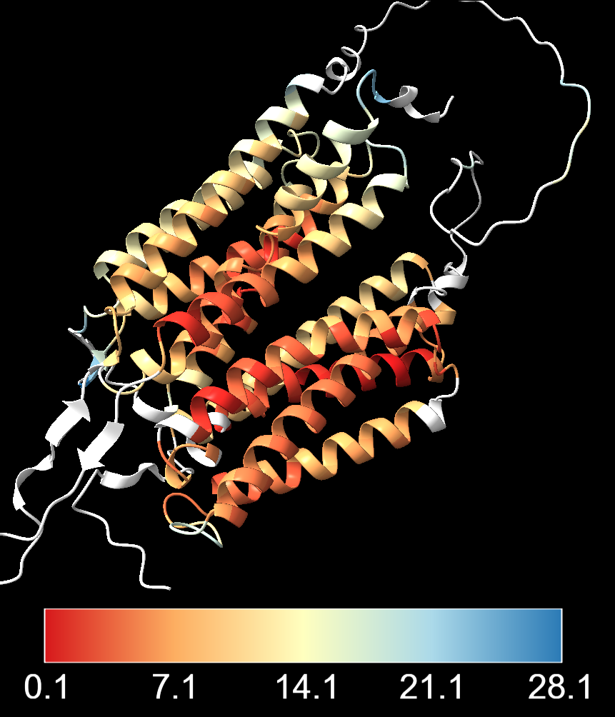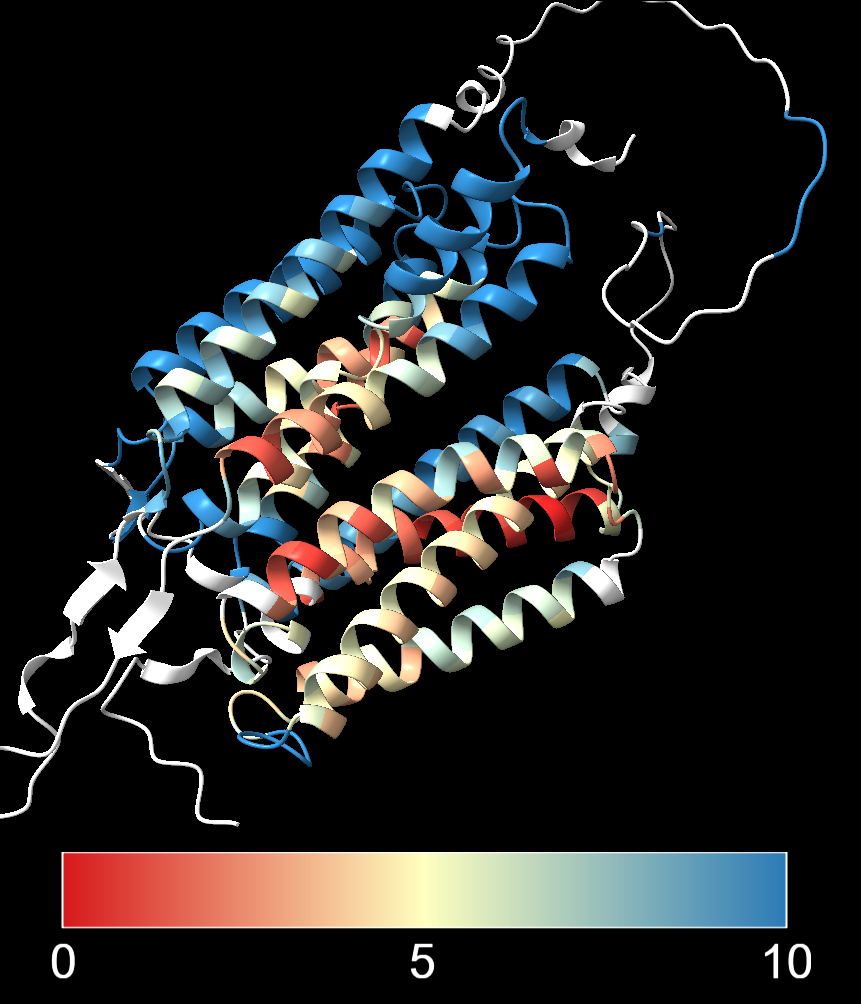 Many of these mutations reduce protein expression, or riboflavin transport activity. At present, no experimentally determined structure exists for the human protein. This makes it a good example for exploring how predicted structures can be evaluated using structural comparisons.